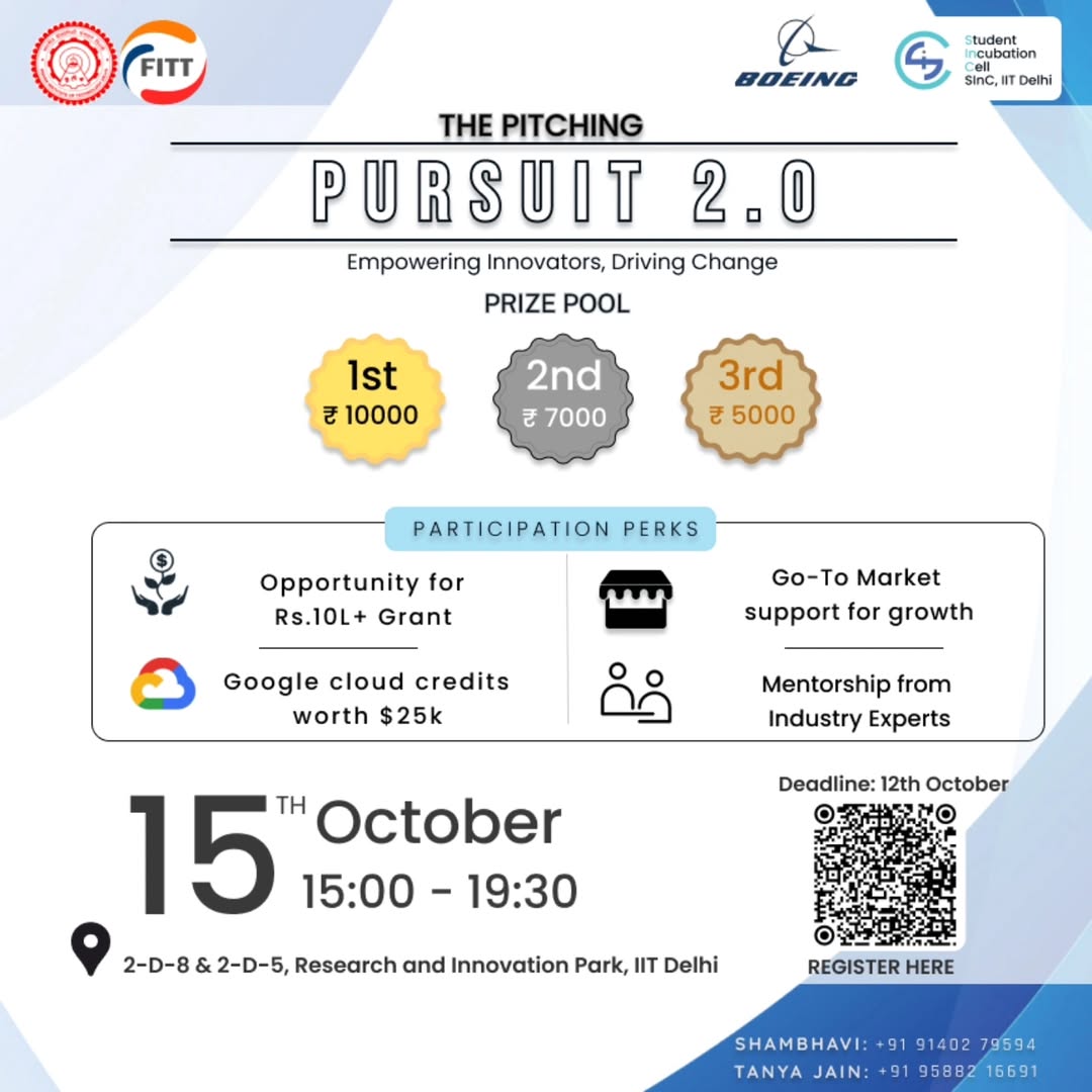 Our mission is to empower every student on campus who aims high to turn their ideas into a real-world startup in every manner feasible and assist them in making a smooth transition through each stage of the process. As they say, It is not about ideas; it is about making ideas happen, and we are committed to paving the path for them with every step they take. Our motto is to create an ecosystem that encourages students to explore their ideas freely by fostering constructive discussions with professors, industry veterans, investors, and peers. We aspire to aid all budding entrepreneurs at IIT Delhi to become established, successful and independent entrepreneurs.
